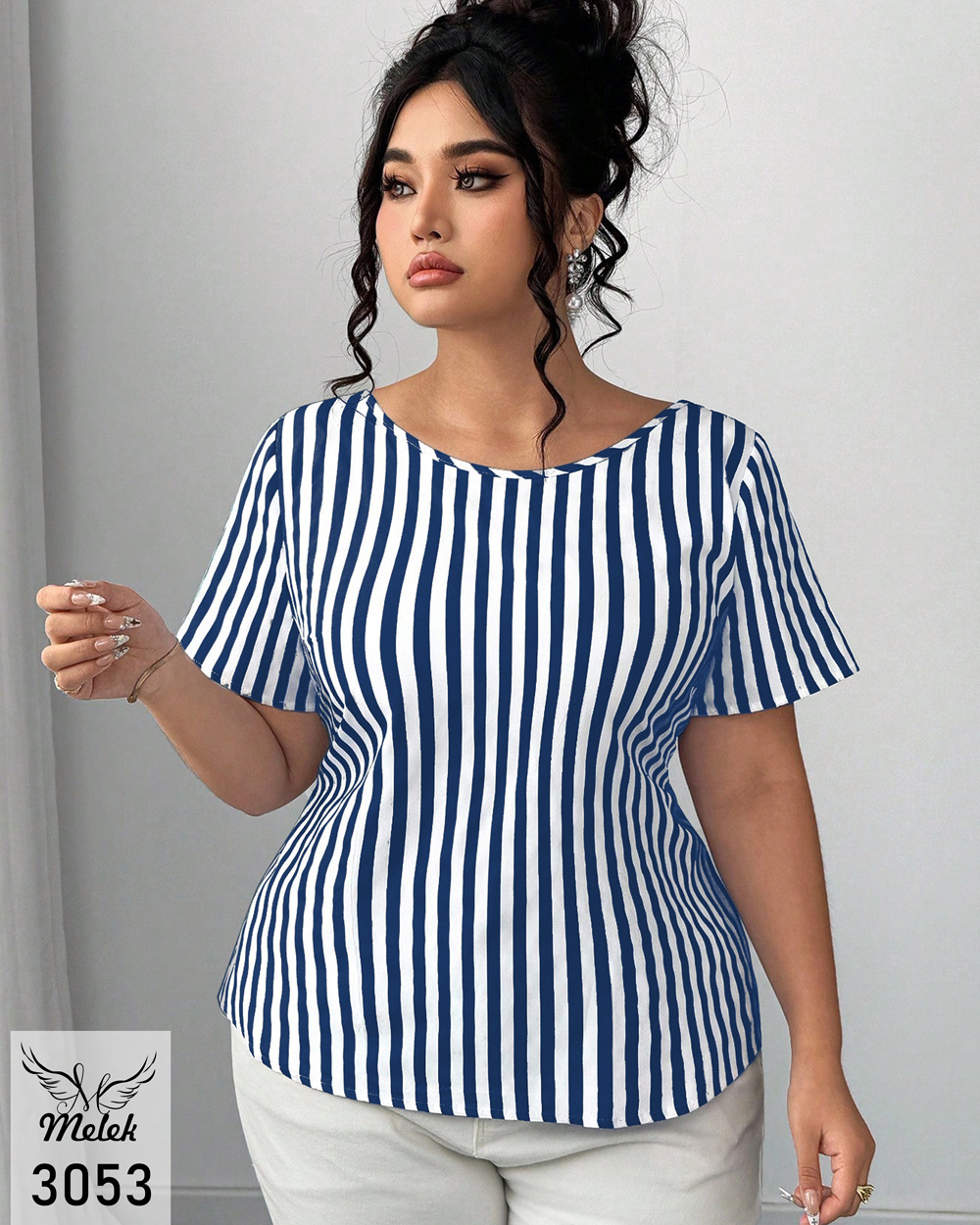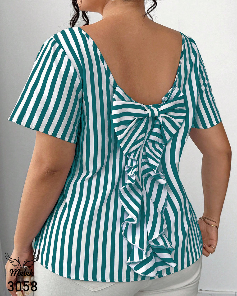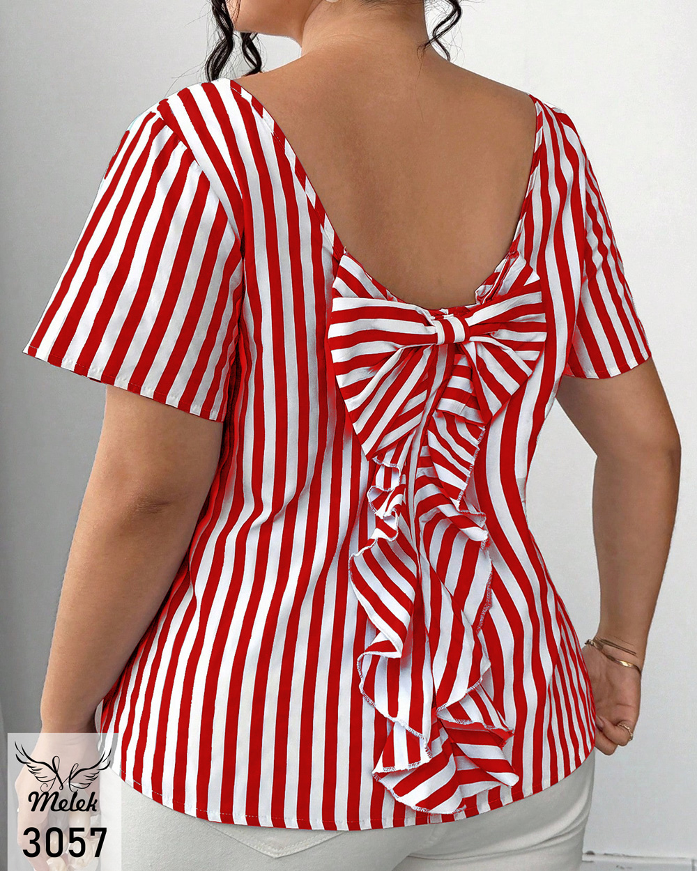 بلوز خاص مجلسی یقه گرد آستین کوتاه پشت پاپیون سایز بزرگ