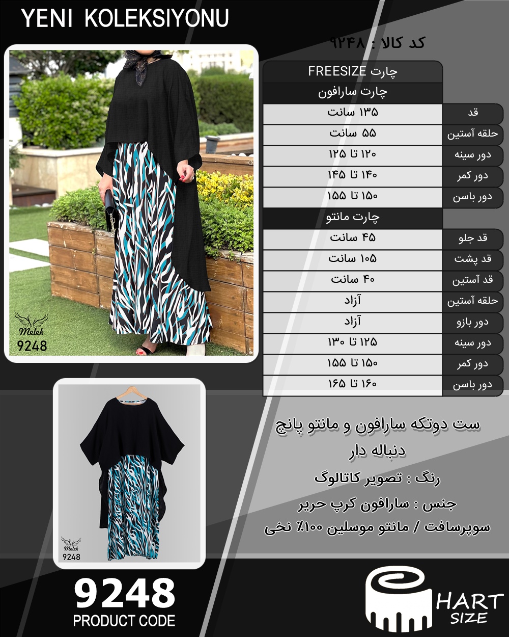 جنس : سارافون کرپ حریر سوپرسافت / مانتو موسلین ۱۰۰٪ نخی