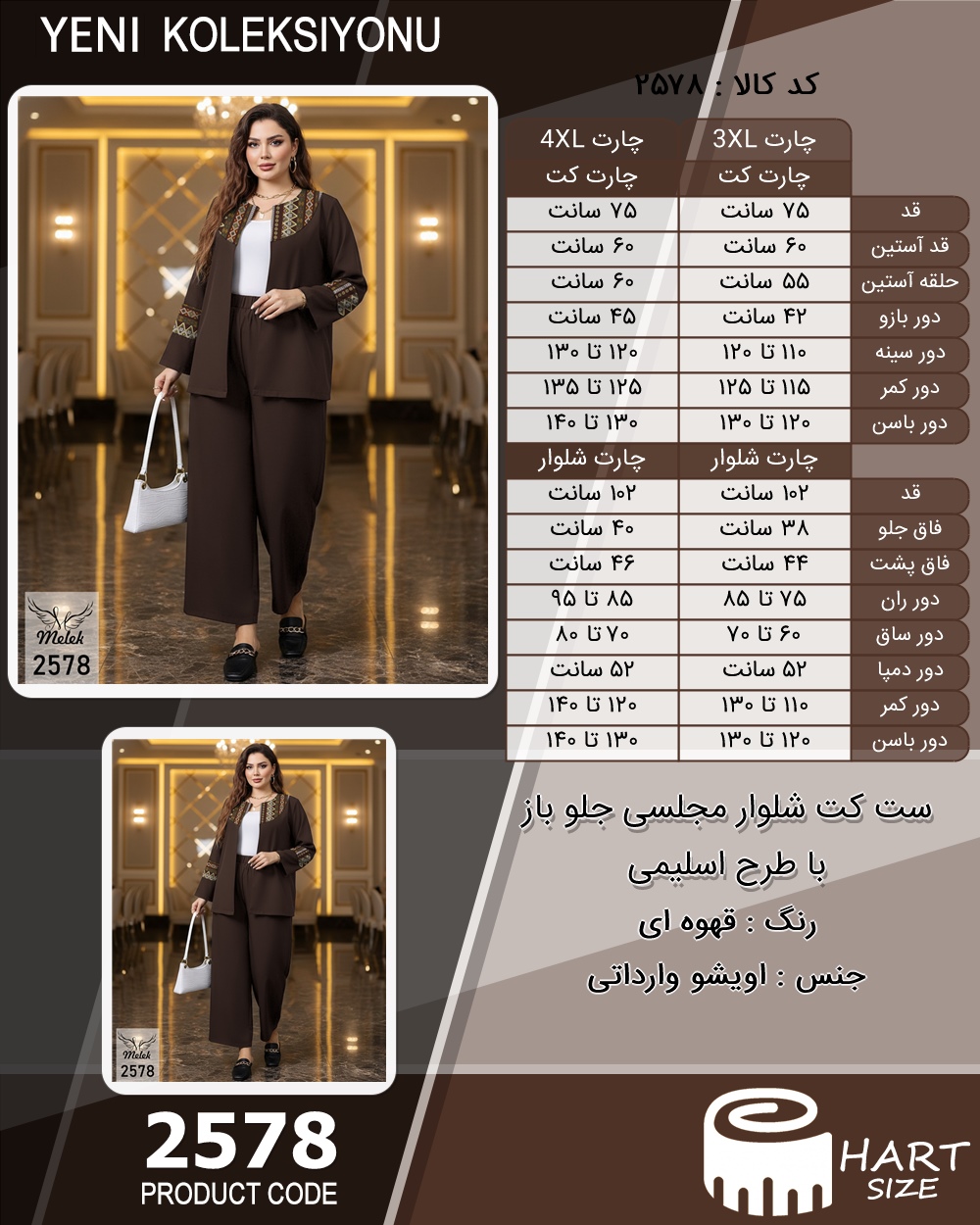 ست کت شلوار مجلسی جلو باز با طرح اسلیمی سایز بزرگ