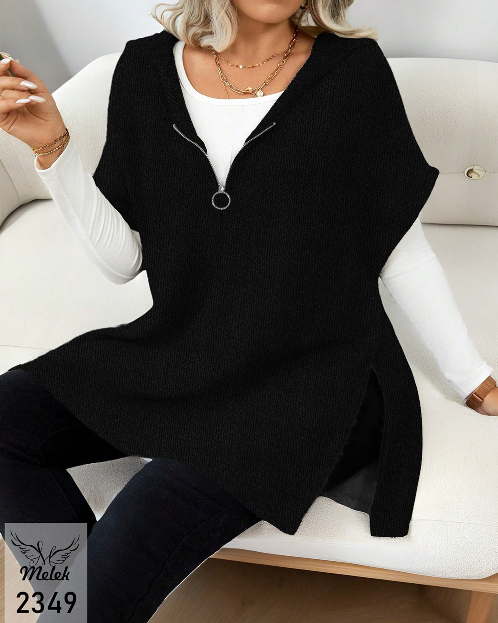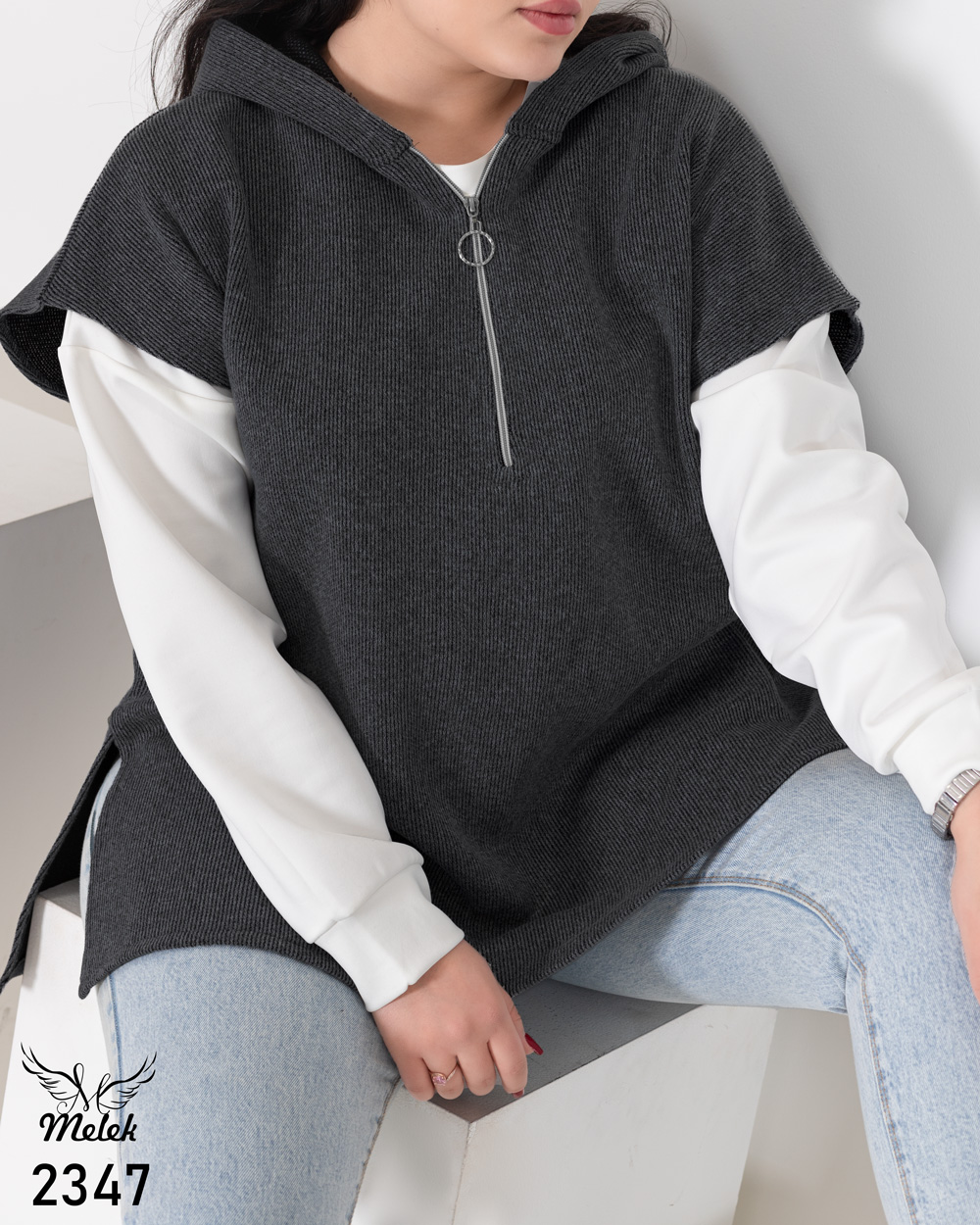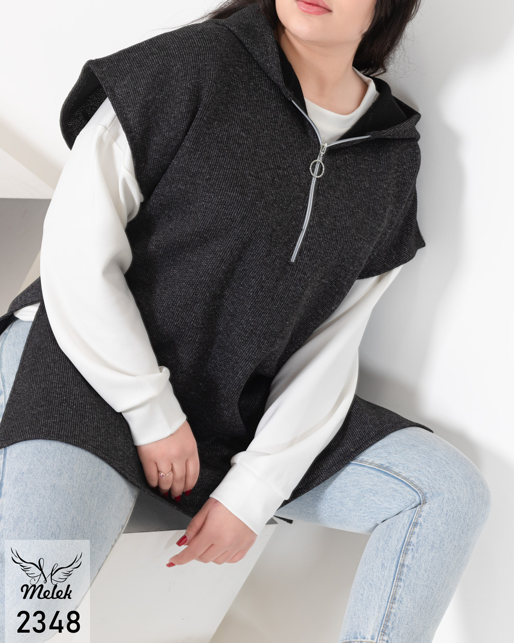 سوشرت اسپورت مجلسی یقه زیپ کلاهدار بدون آستین سایز بزرگ