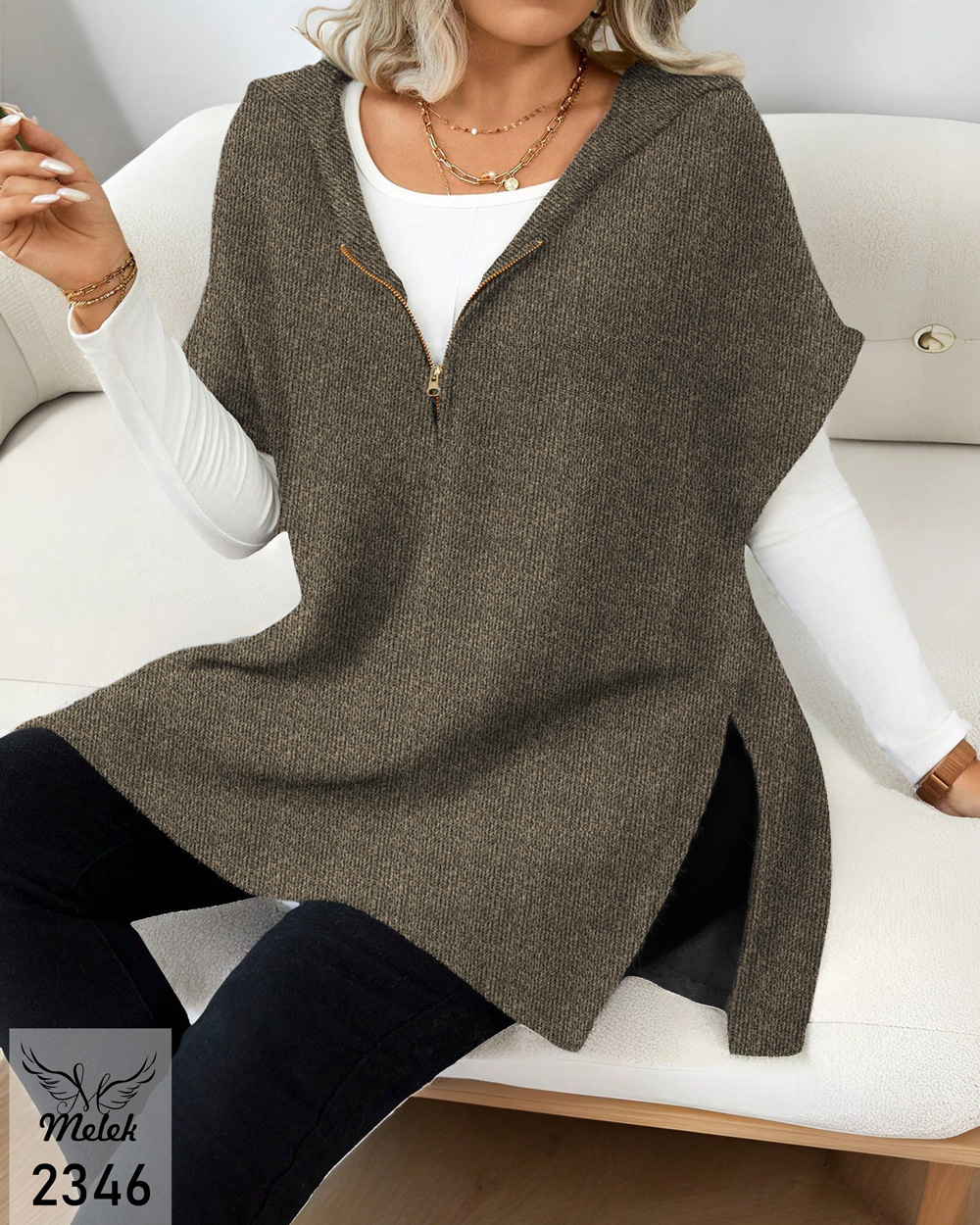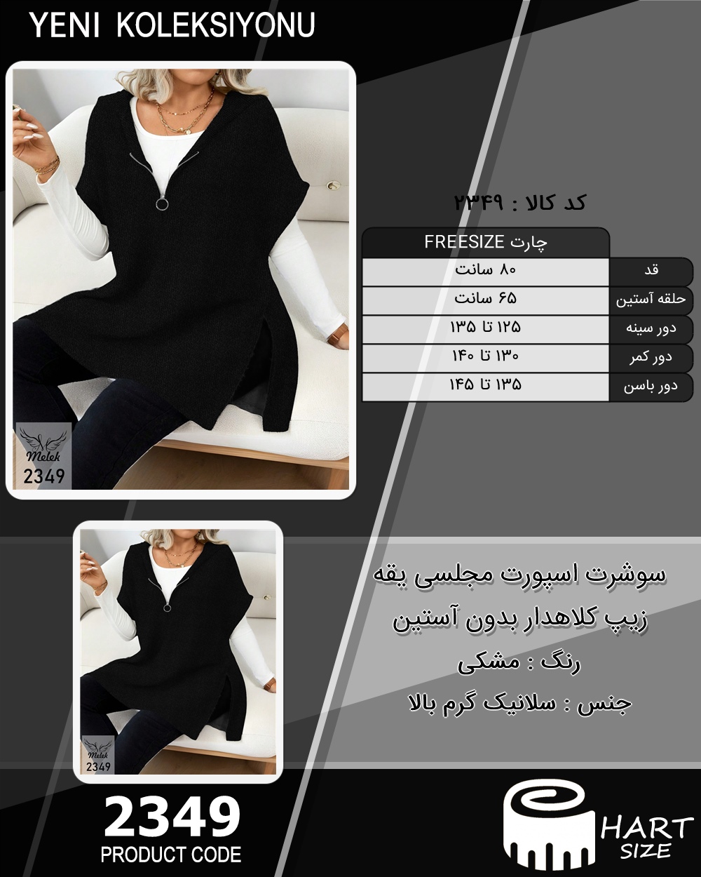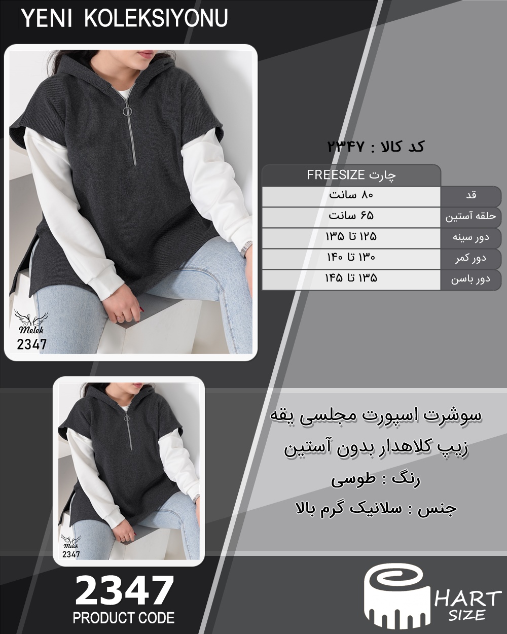سوشرت اسپورت مجلسی یقه زیپ کلاهدار بدون آستین سایز بزرگ
