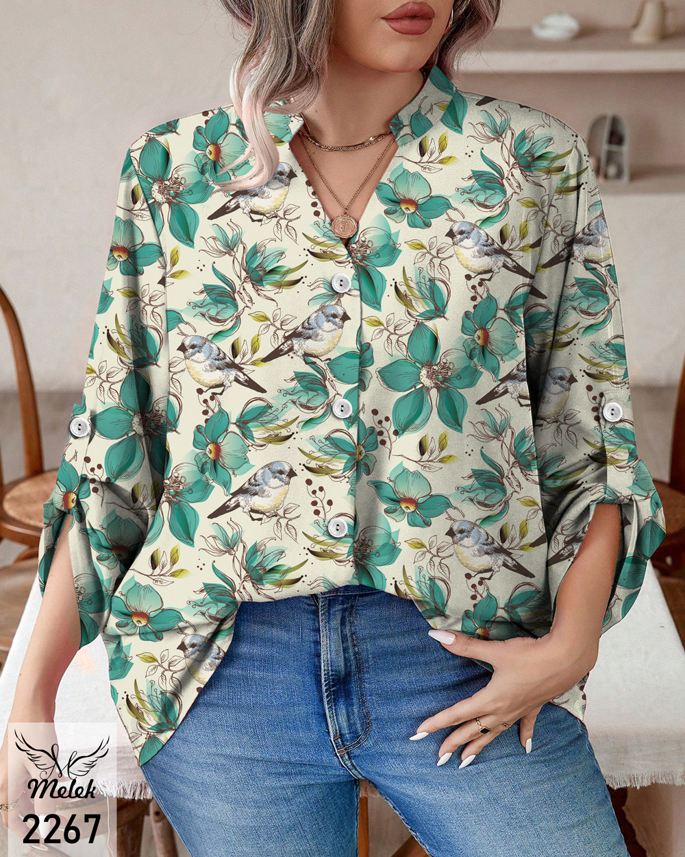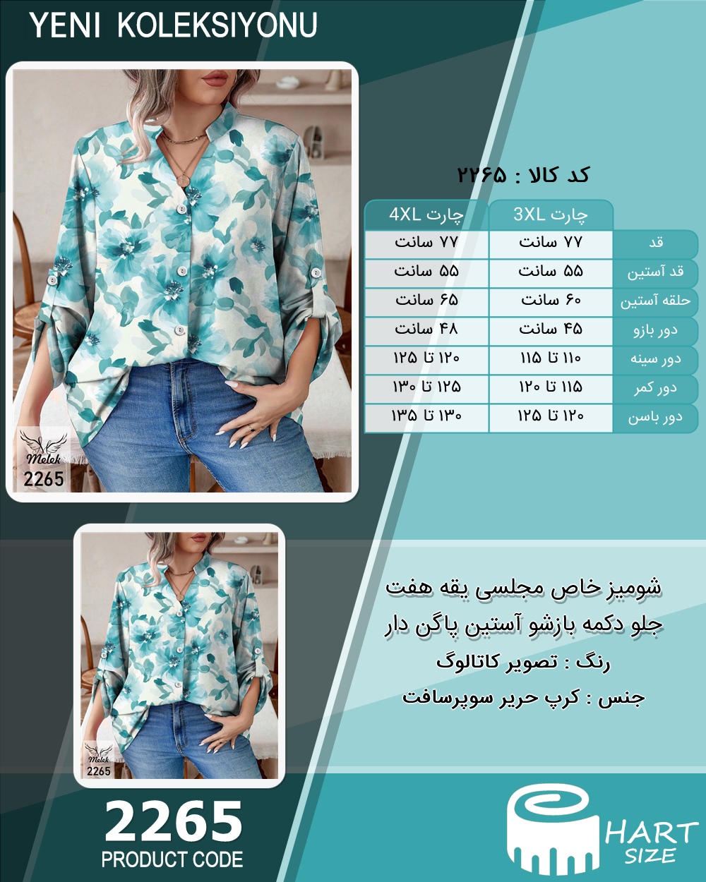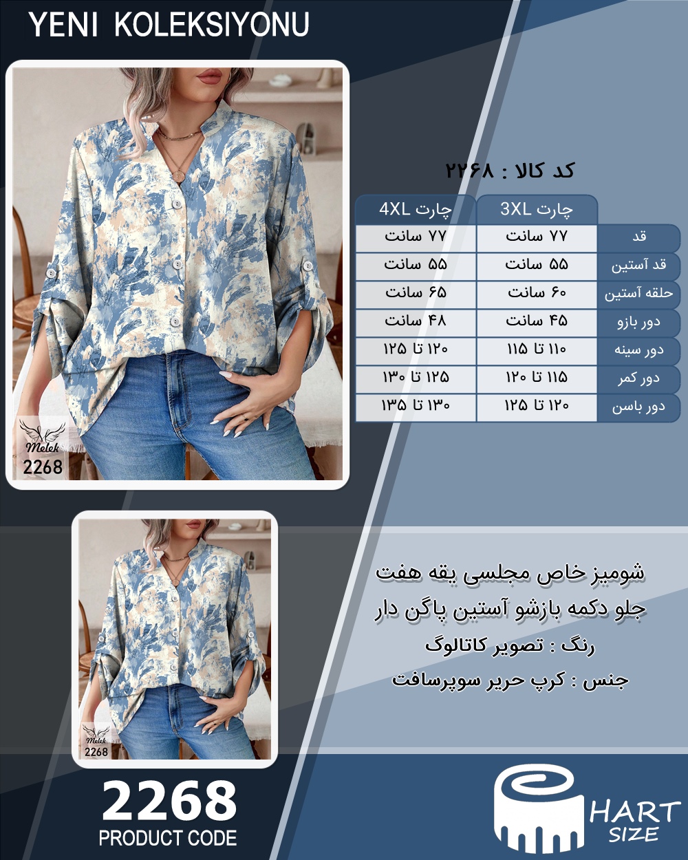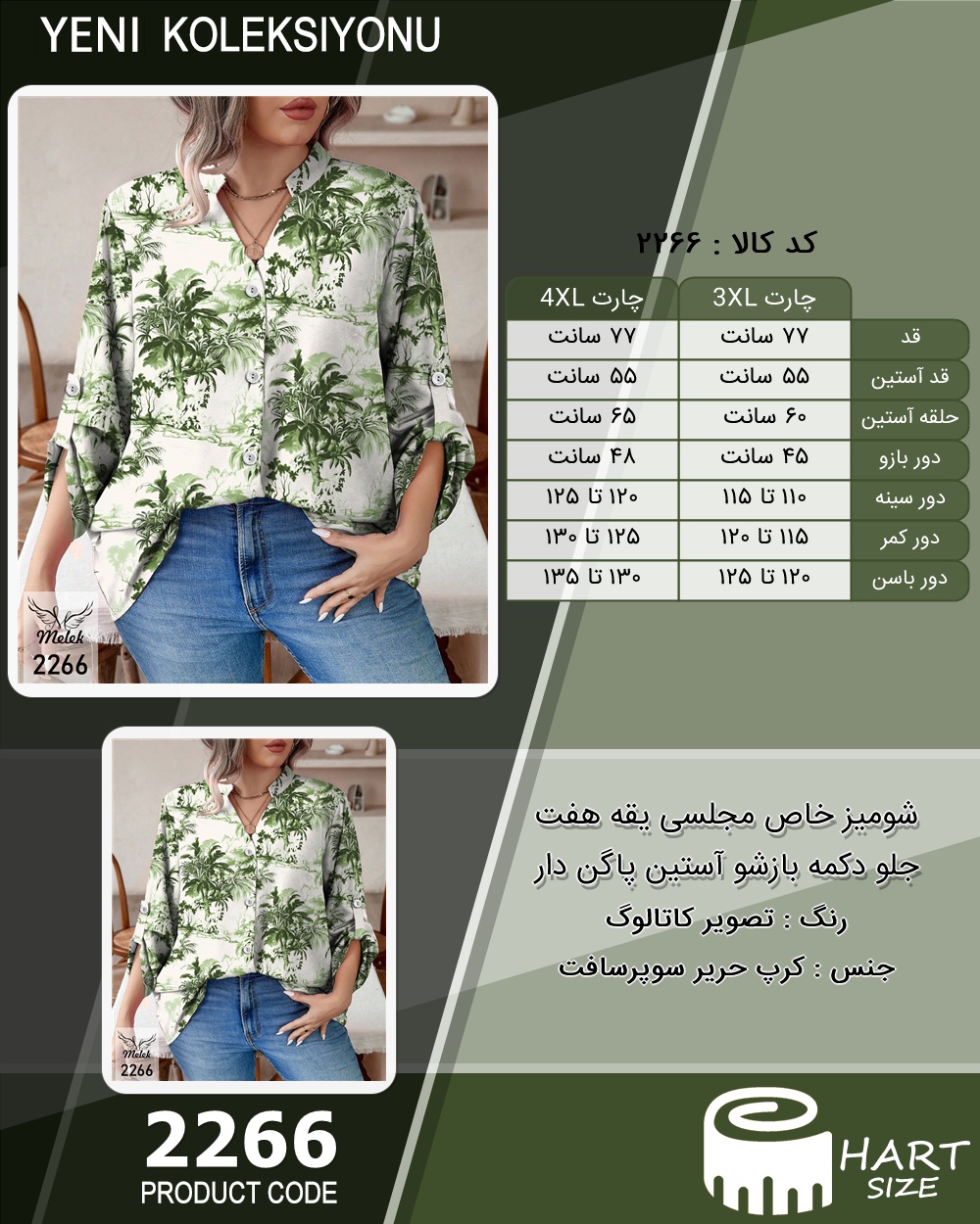 شومیز خاص مجلسی یقه هفت جلو دکمه بازشو آستین پاگن دار سایز بزرگ