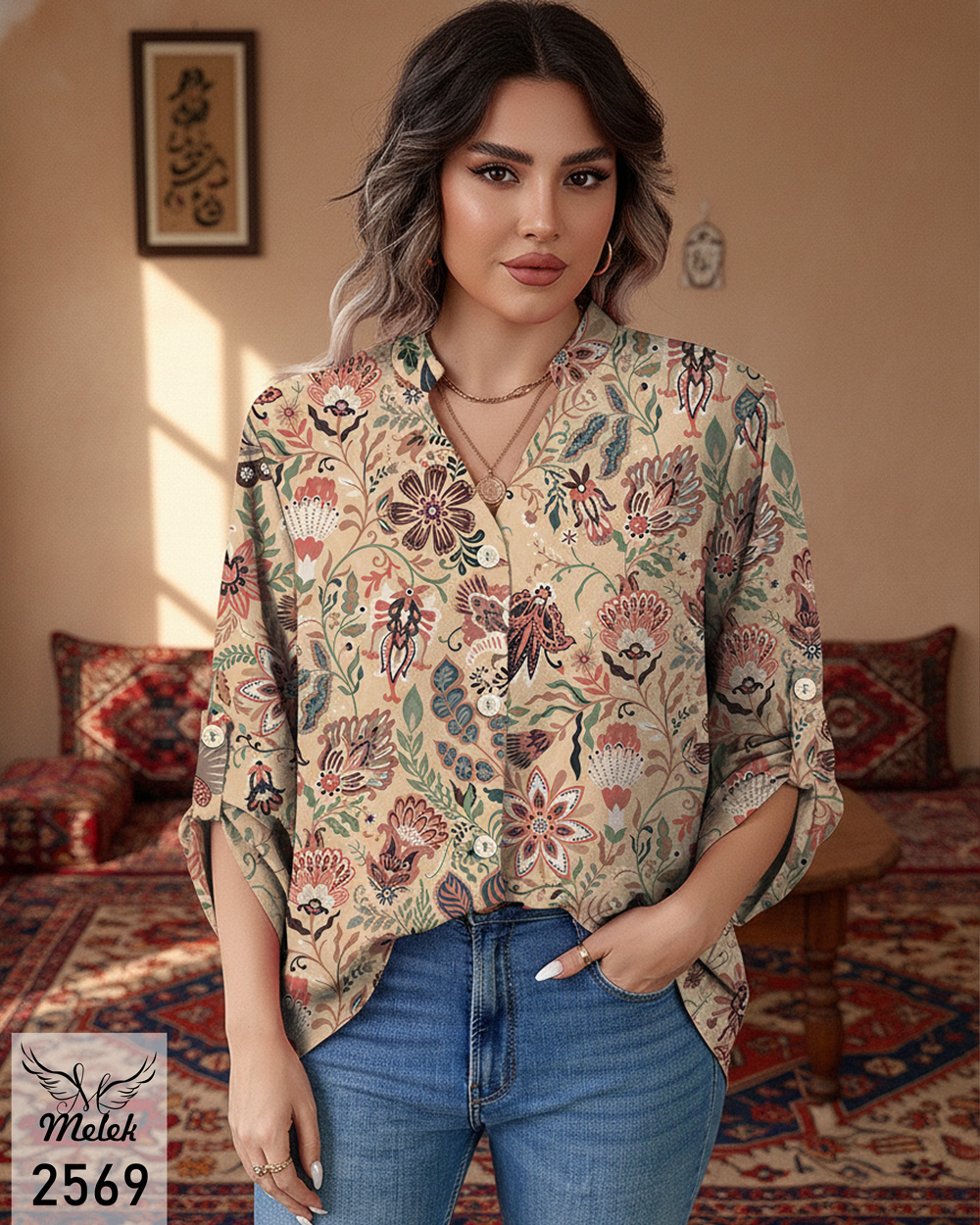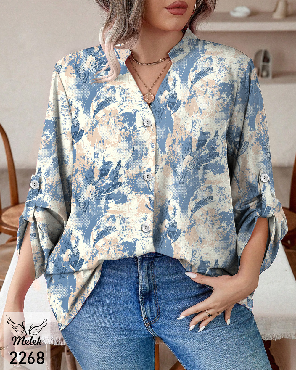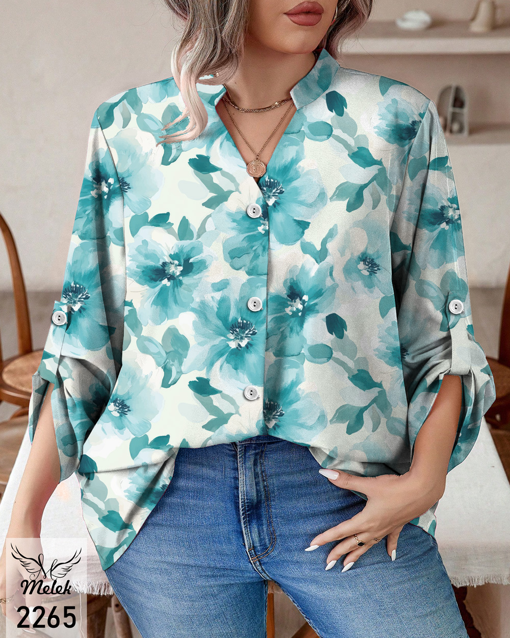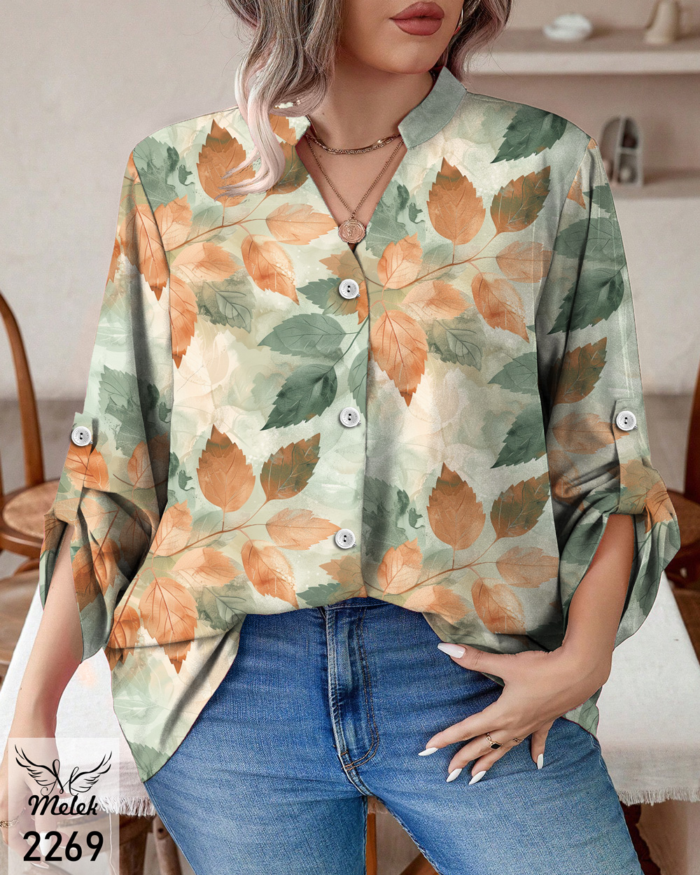 شومیز خاص مجلسی یقه هفت جلو دکمه بازشو آستین پاگن دار سایز بزرگ