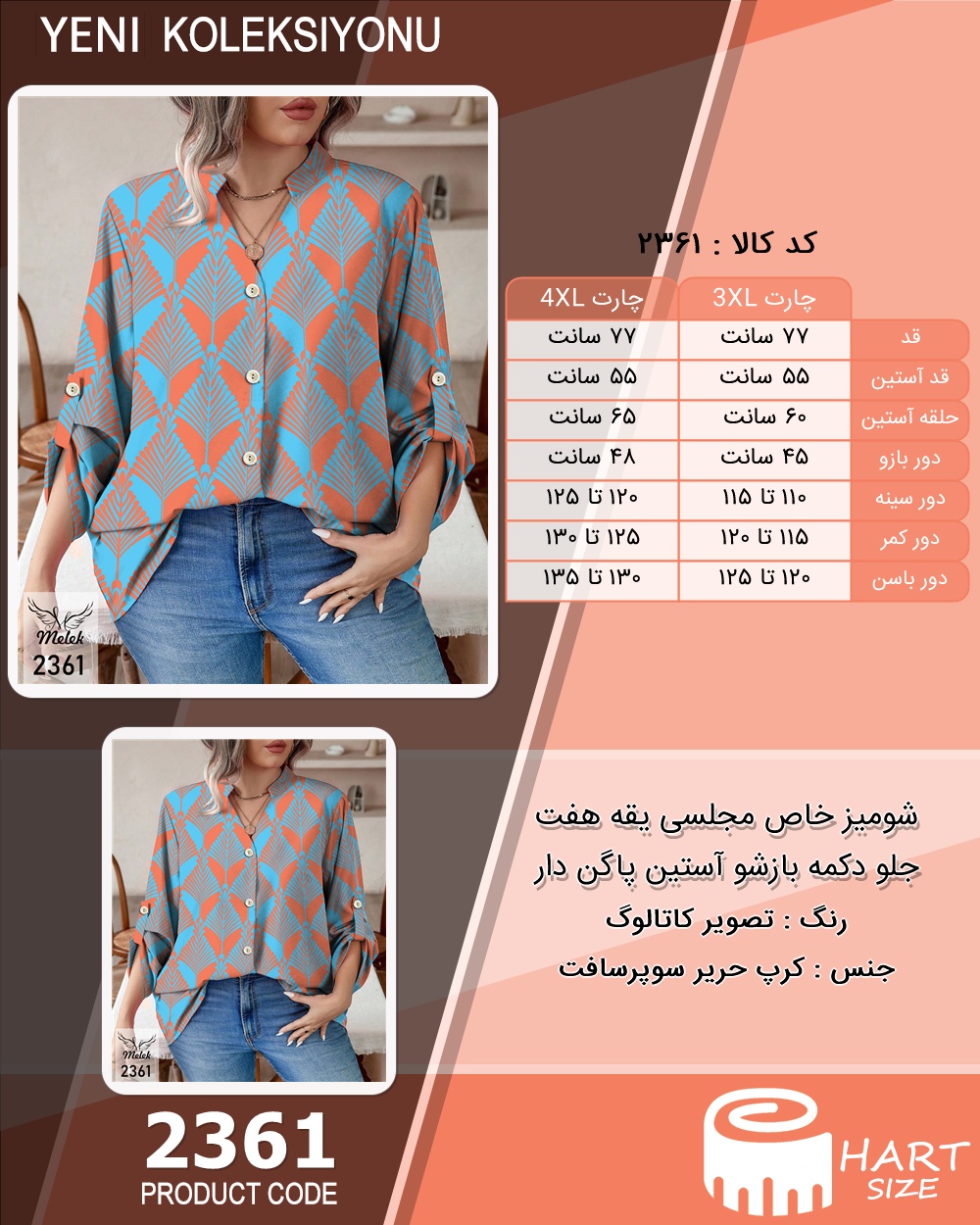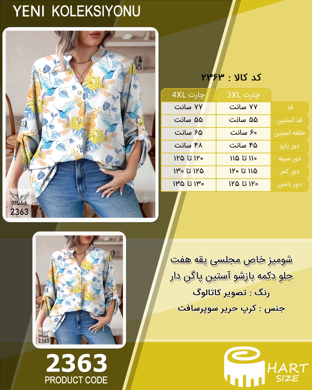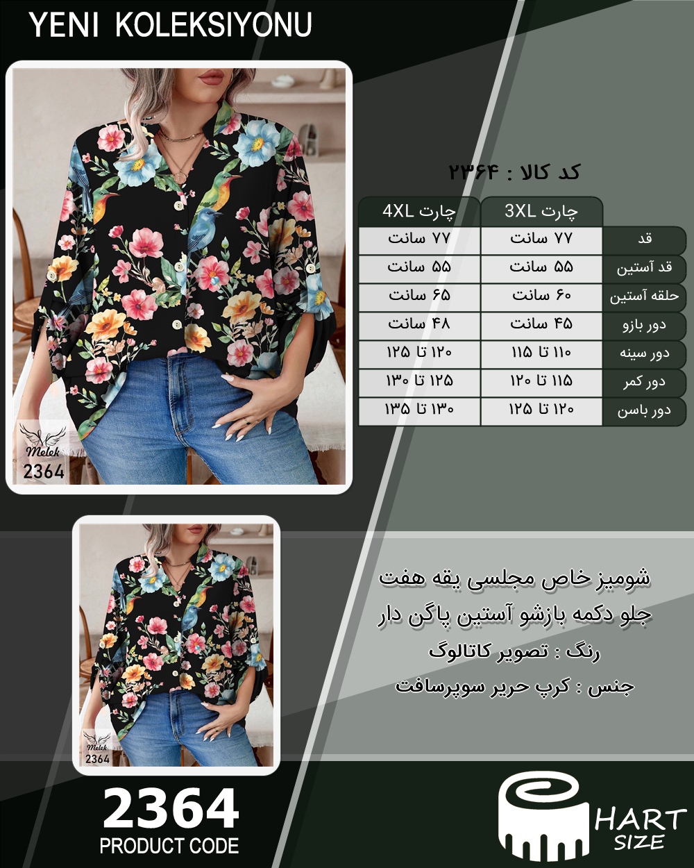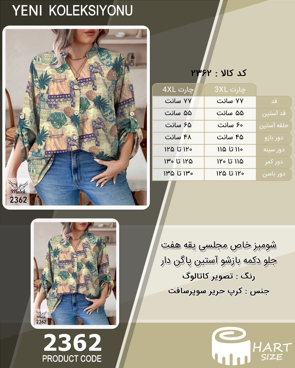 شومیز خاص مجلسی یقه هفت جلو دکمه بازشو آستین پاگن دار سایز بزرگ