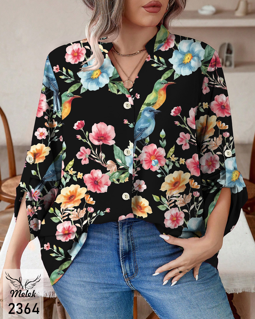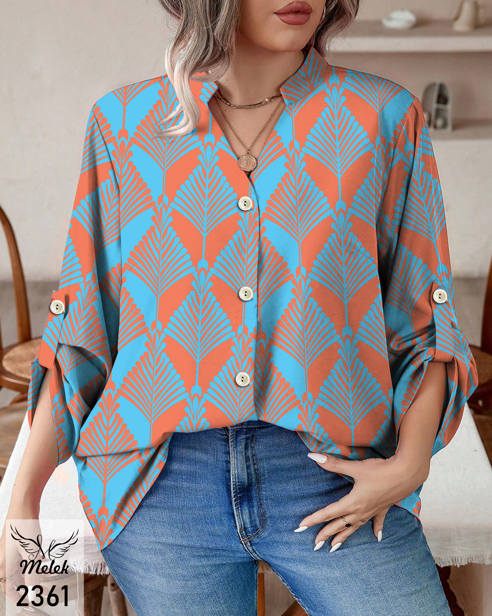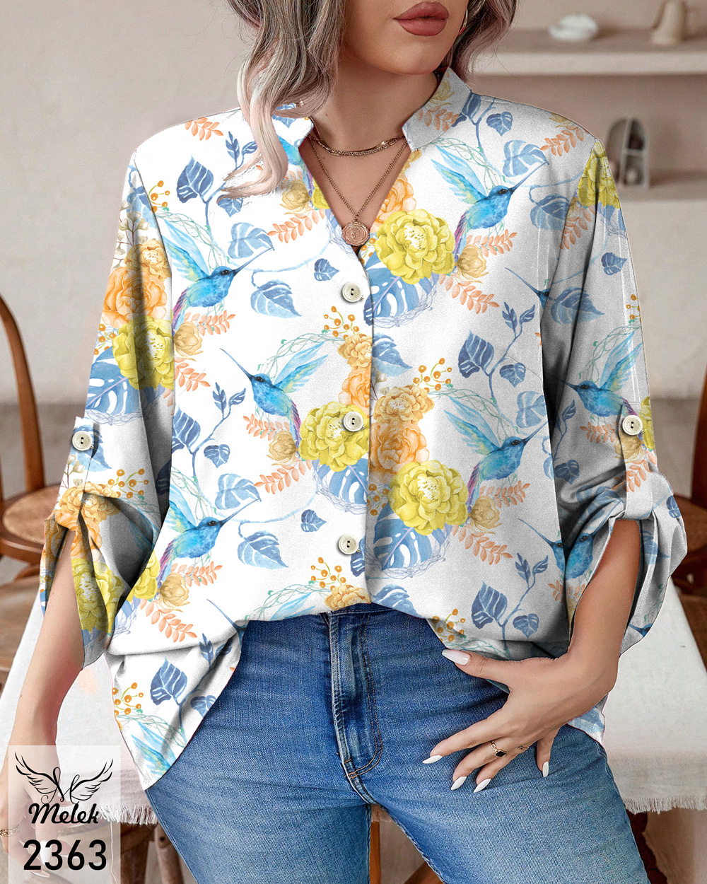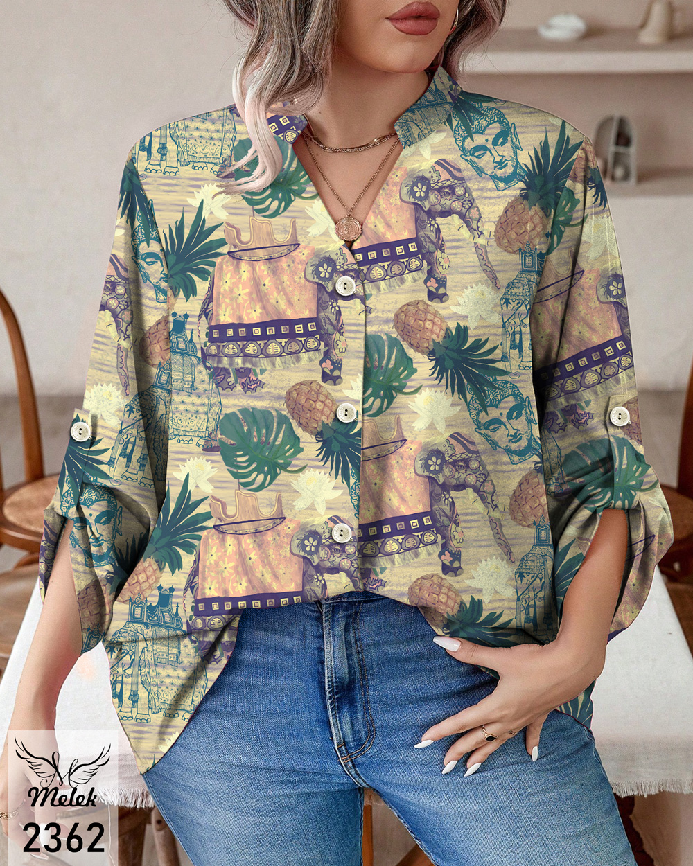 شومیز خاص مجلسی یقه هفت جلو دکمه بازشو آستین پاگن دار سایز بزرگ