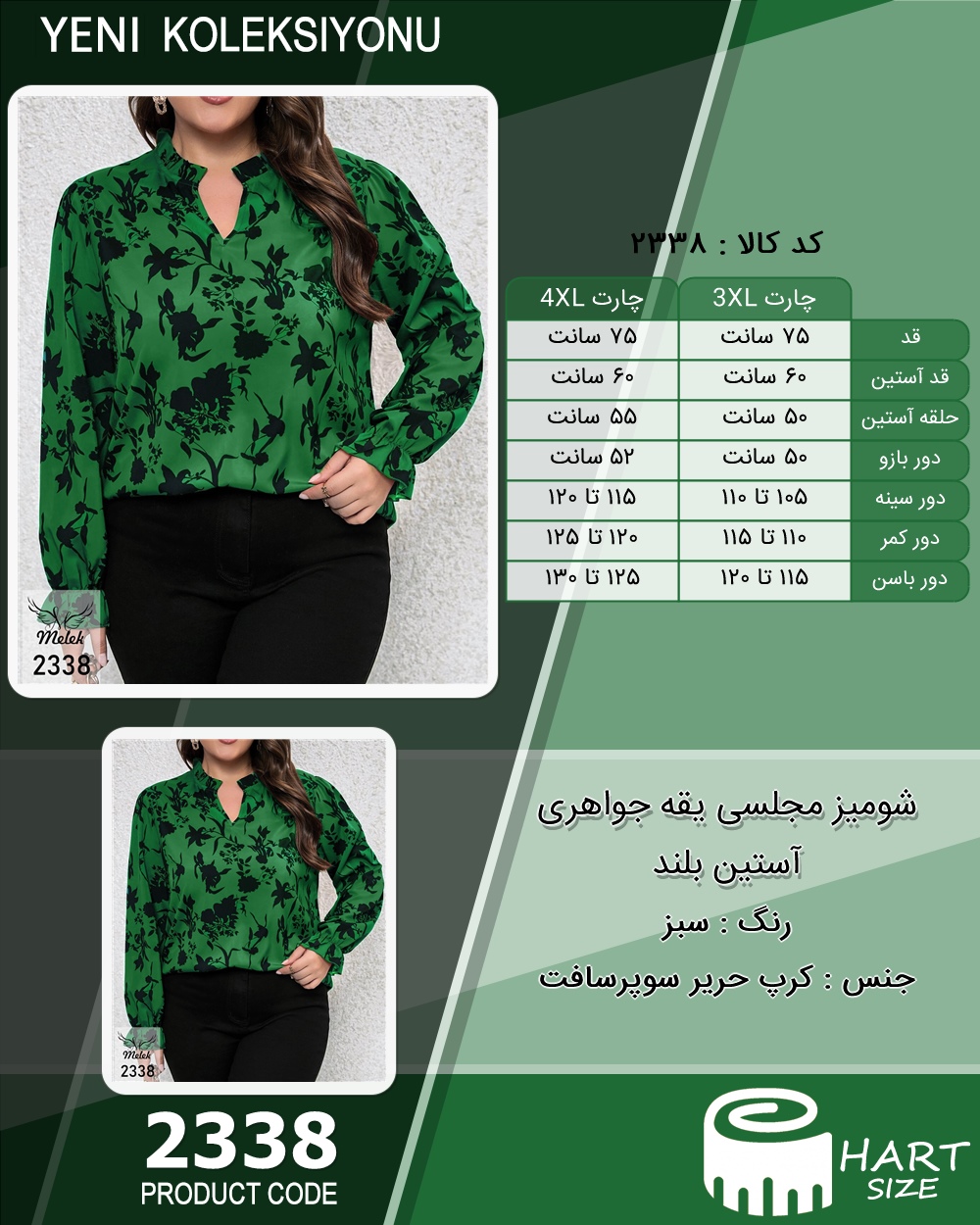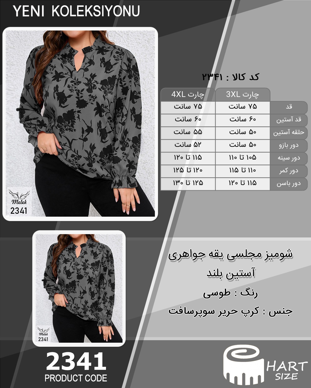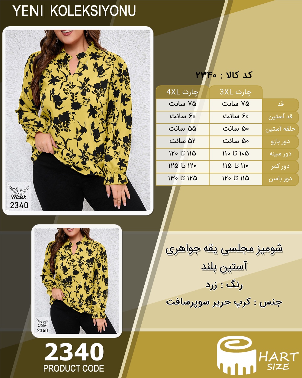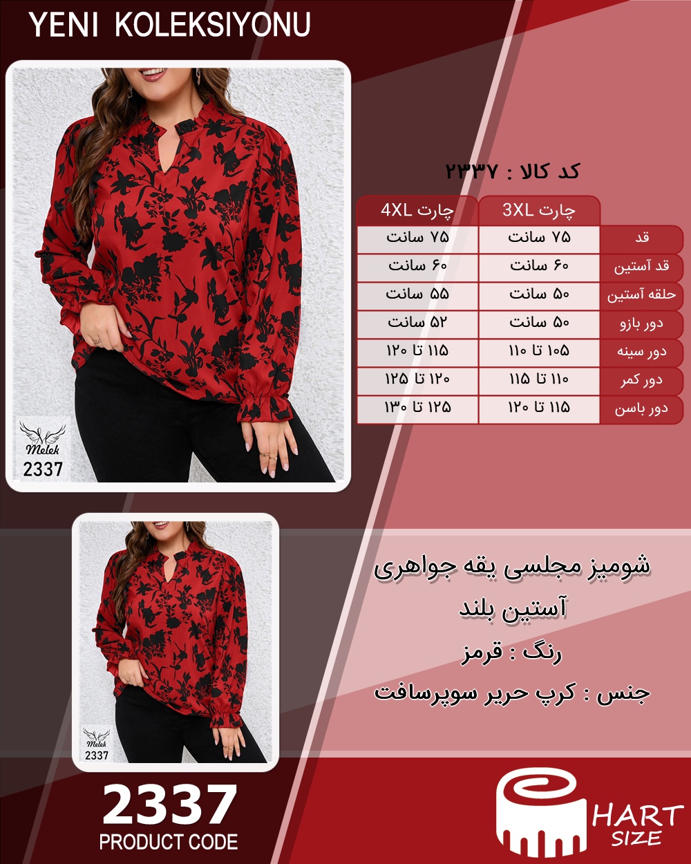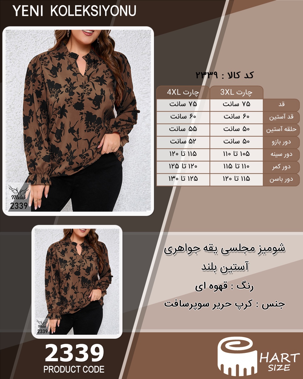 شومیز مجلسی یقه جواهری آستین بلند سایز بزرگ