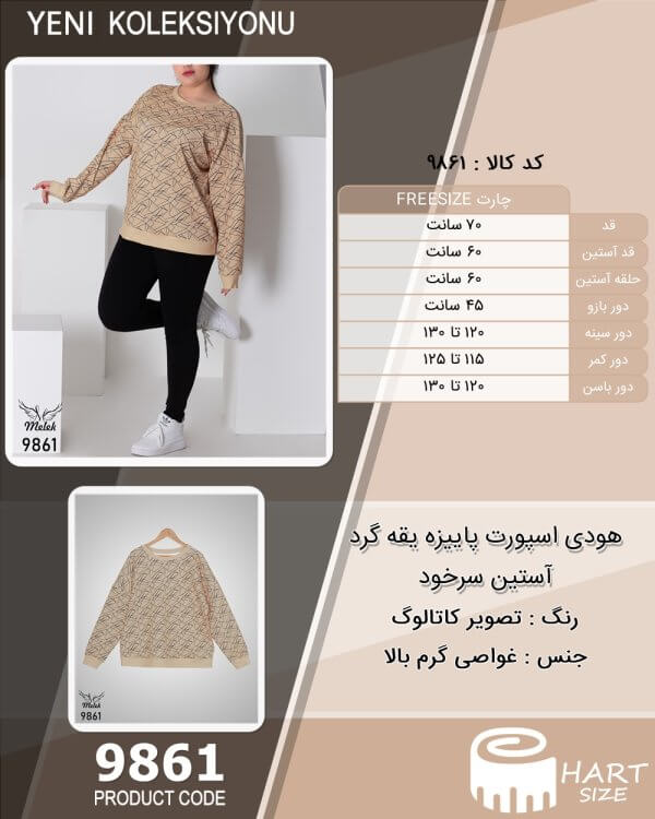 هودی اسپورت پاییزه یقه گرد آستین سرخود سایز بزرگ