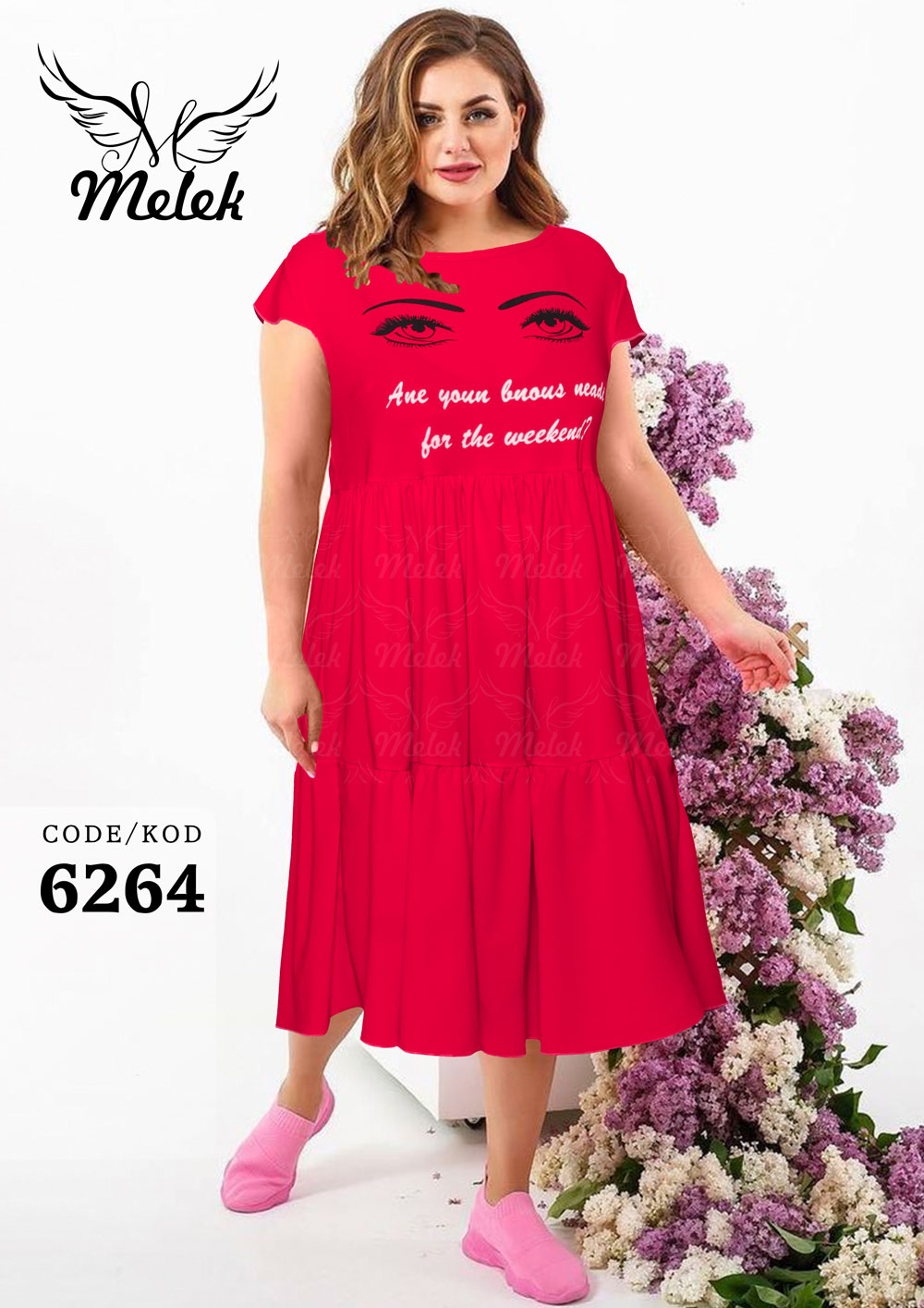 پیراهن یقه گرد آستین کوتاه دامن چین دار سایز بزرگ